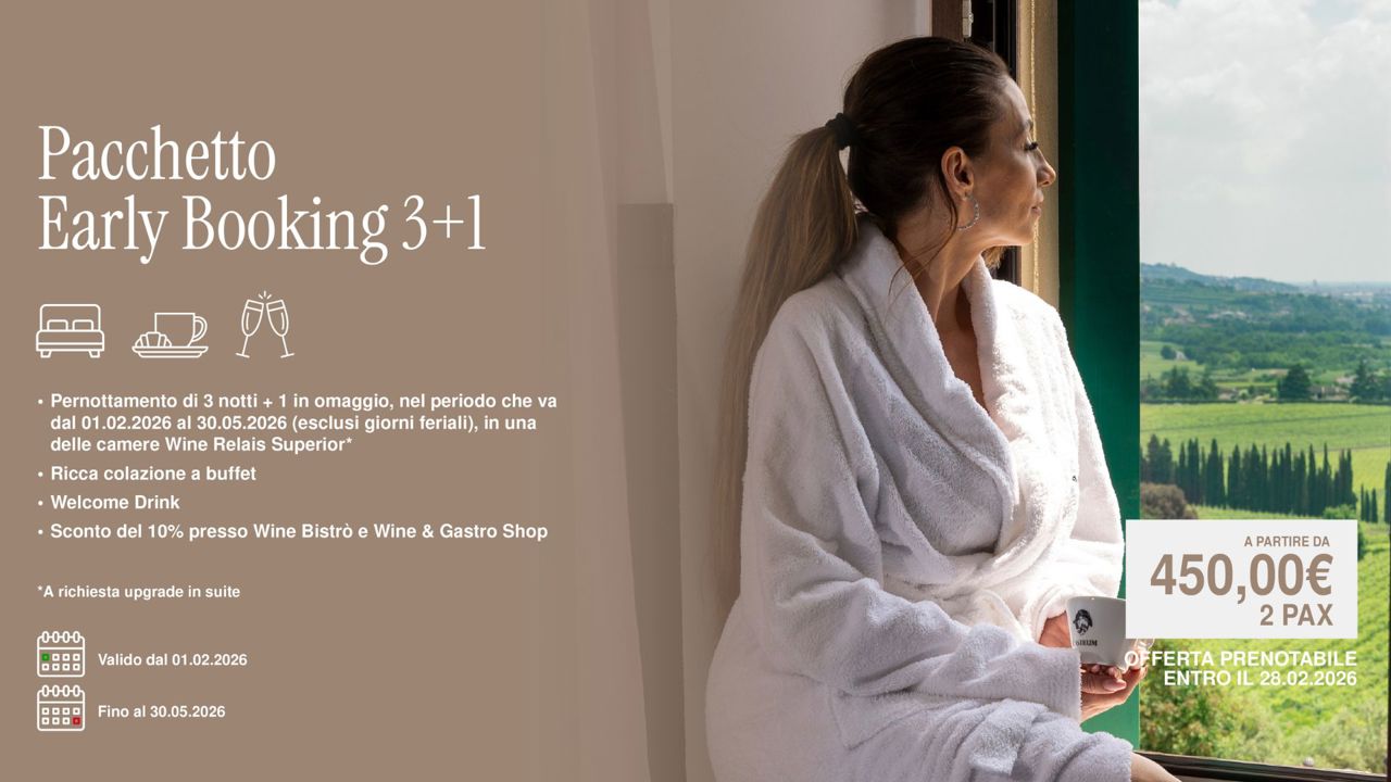 Il Wine Relais “Castrum” si trova sulla sommità più alta della collina centrale della Valpolicella Classica, nel borgo medievale di Castelrotto. Da qui puoi abbracciare tutta la vallata con uno sguardo ed è subito bellezza.